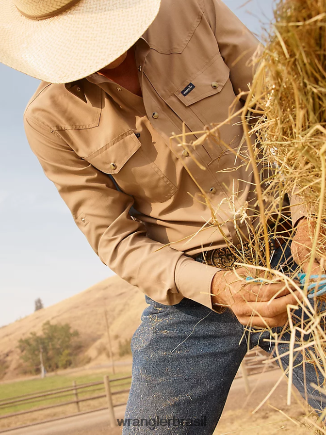 Wrangler camisa lisa de manga comprida com pressão de desempenho nublado (112323768) homens roupas 00LN6N432